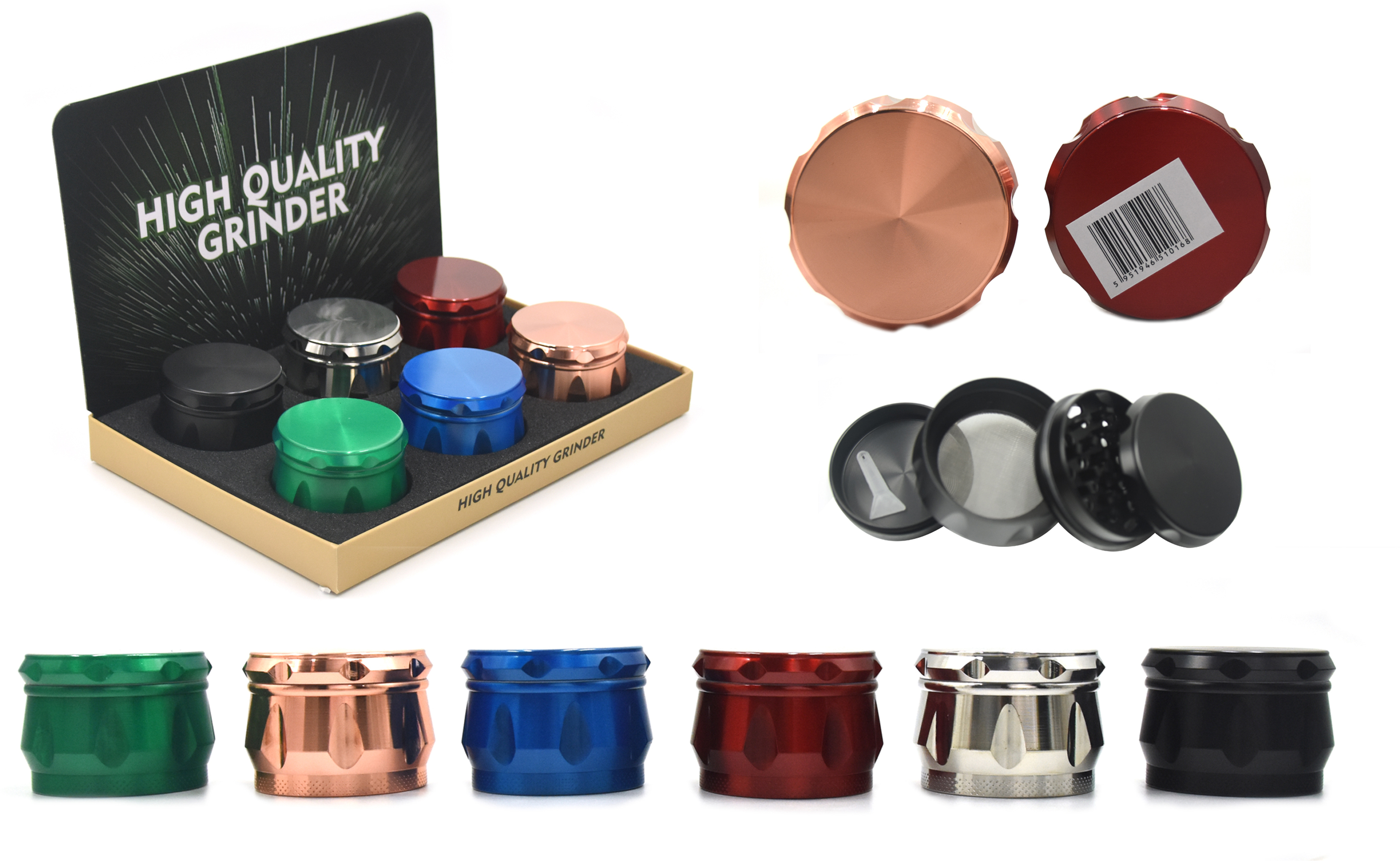 Dohányőrlő A340071 4 részes, fémes, több szín