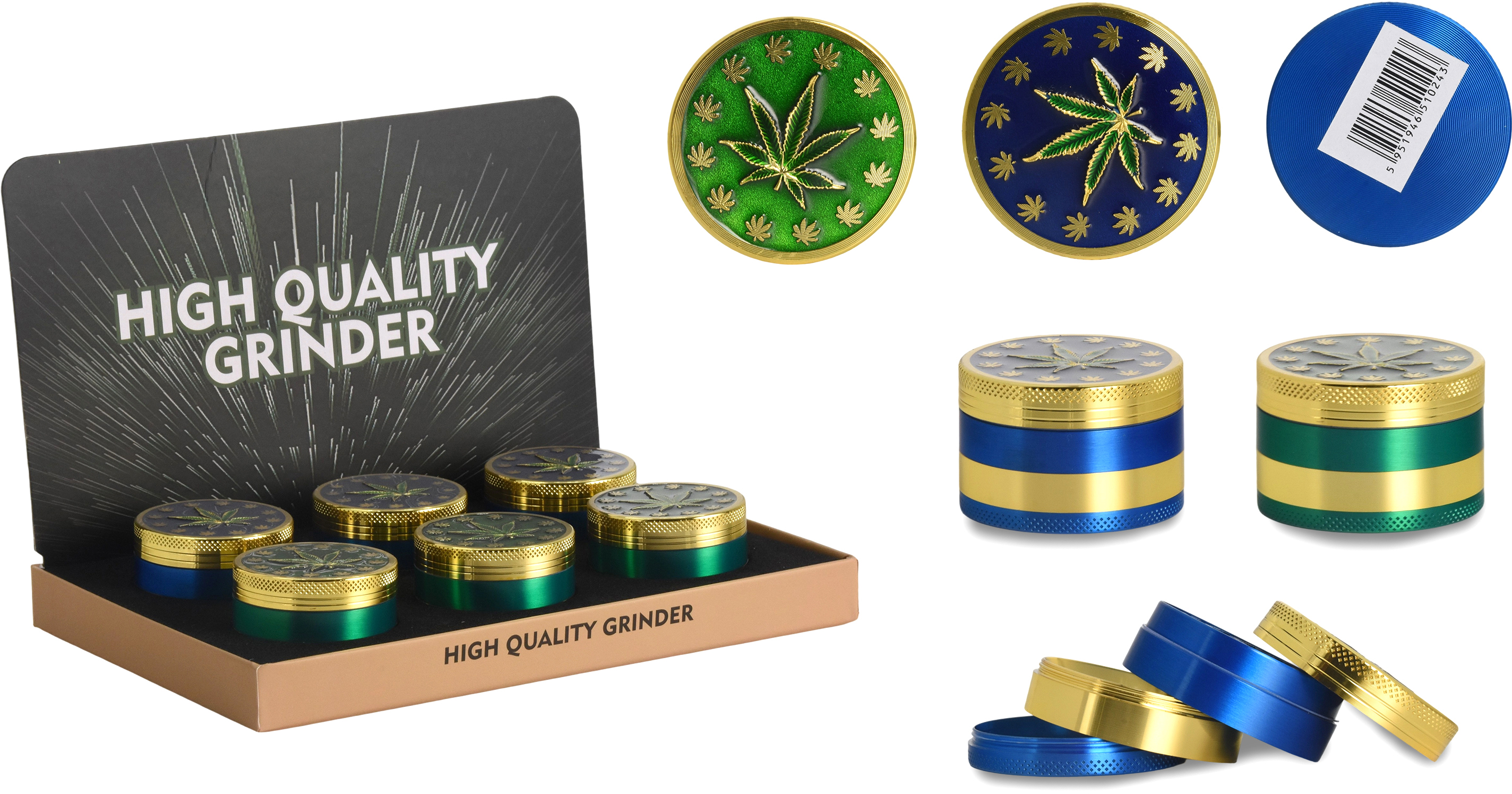 Dohányőrlő A340071 4 részes, fémes, több szín