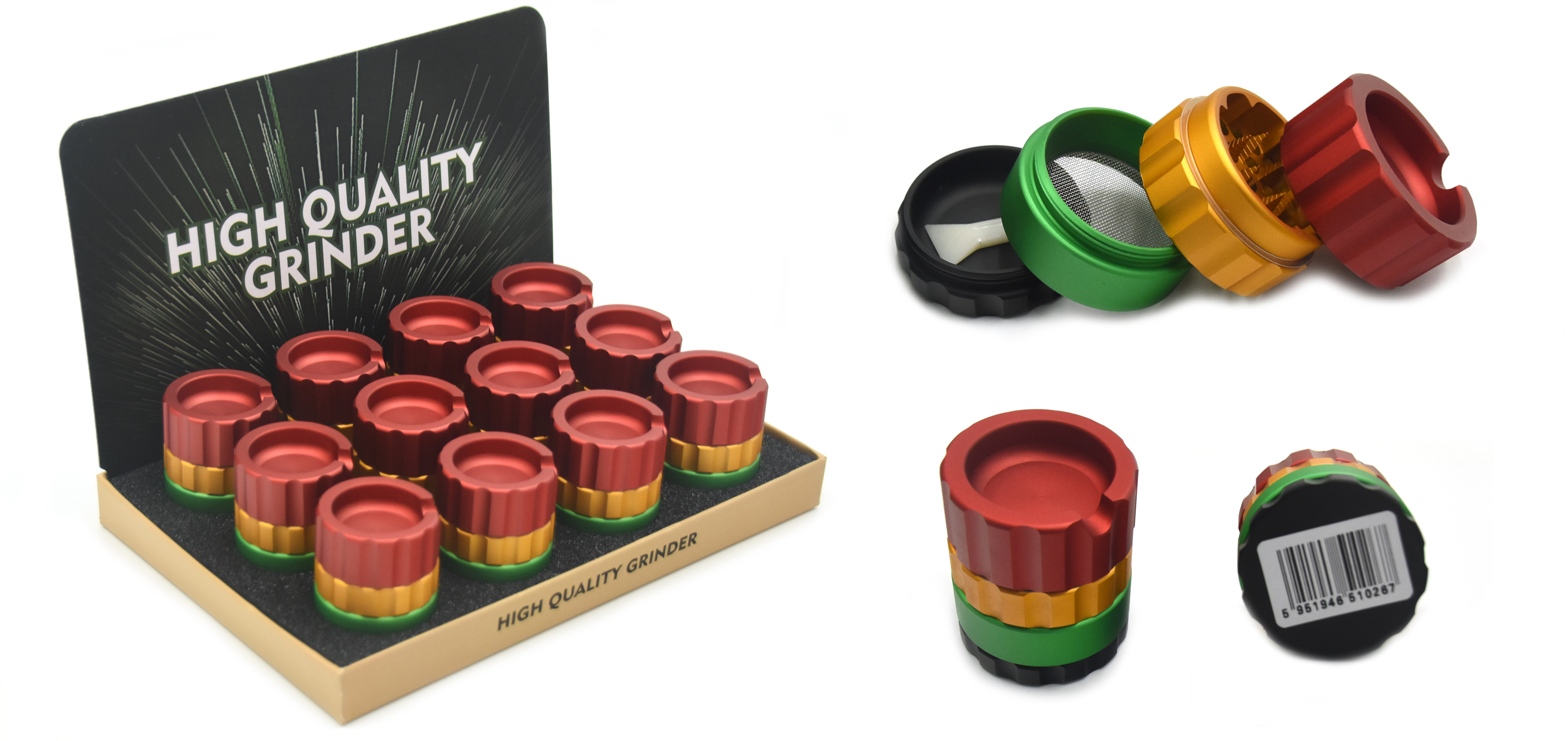 Dohányőrlő A340071 4 részes, fémes, több szín
