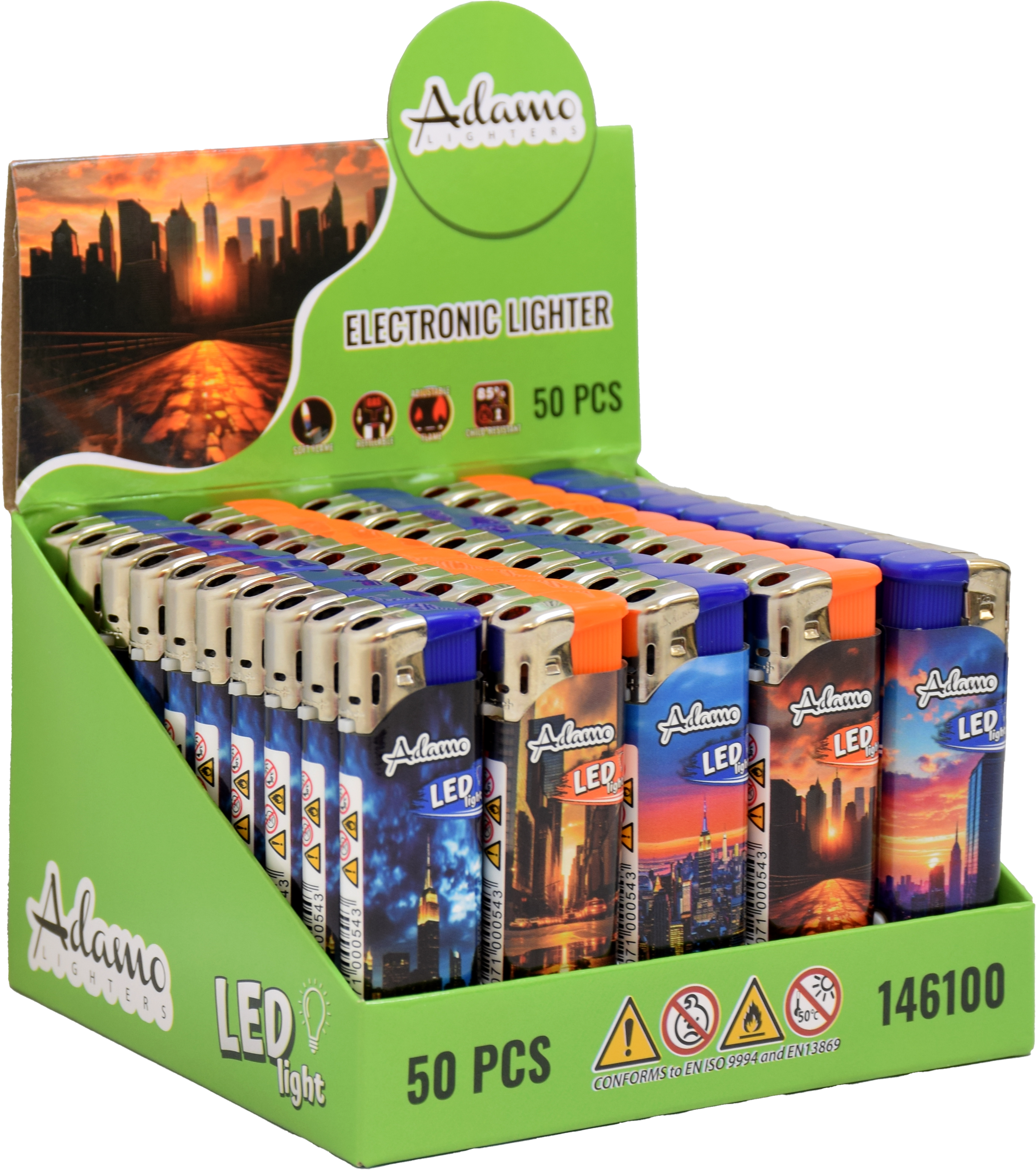 Electronic Lighter 146100 Adamo Design label LED City skyline