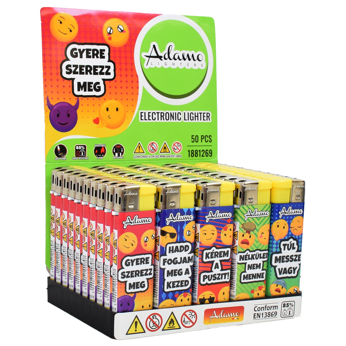 Electronic Lighter 1881269 Adamo Design label Positive text smilies