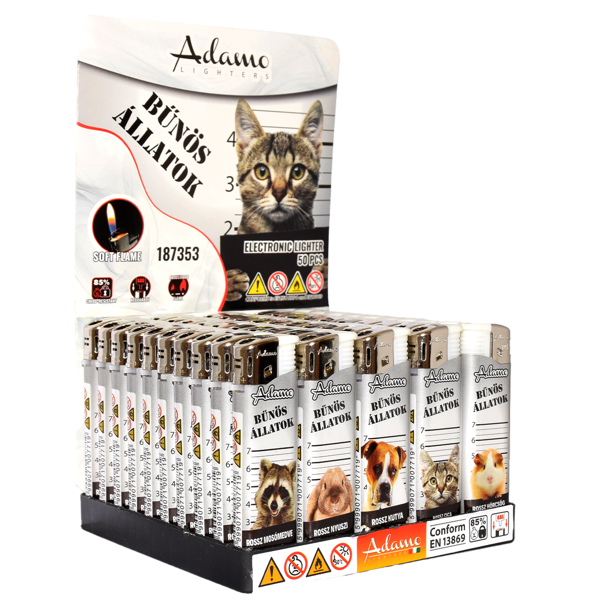 Elektromos Öngyújtó 187353 Adamo Vegyes mintás Slim Bűnös állatok