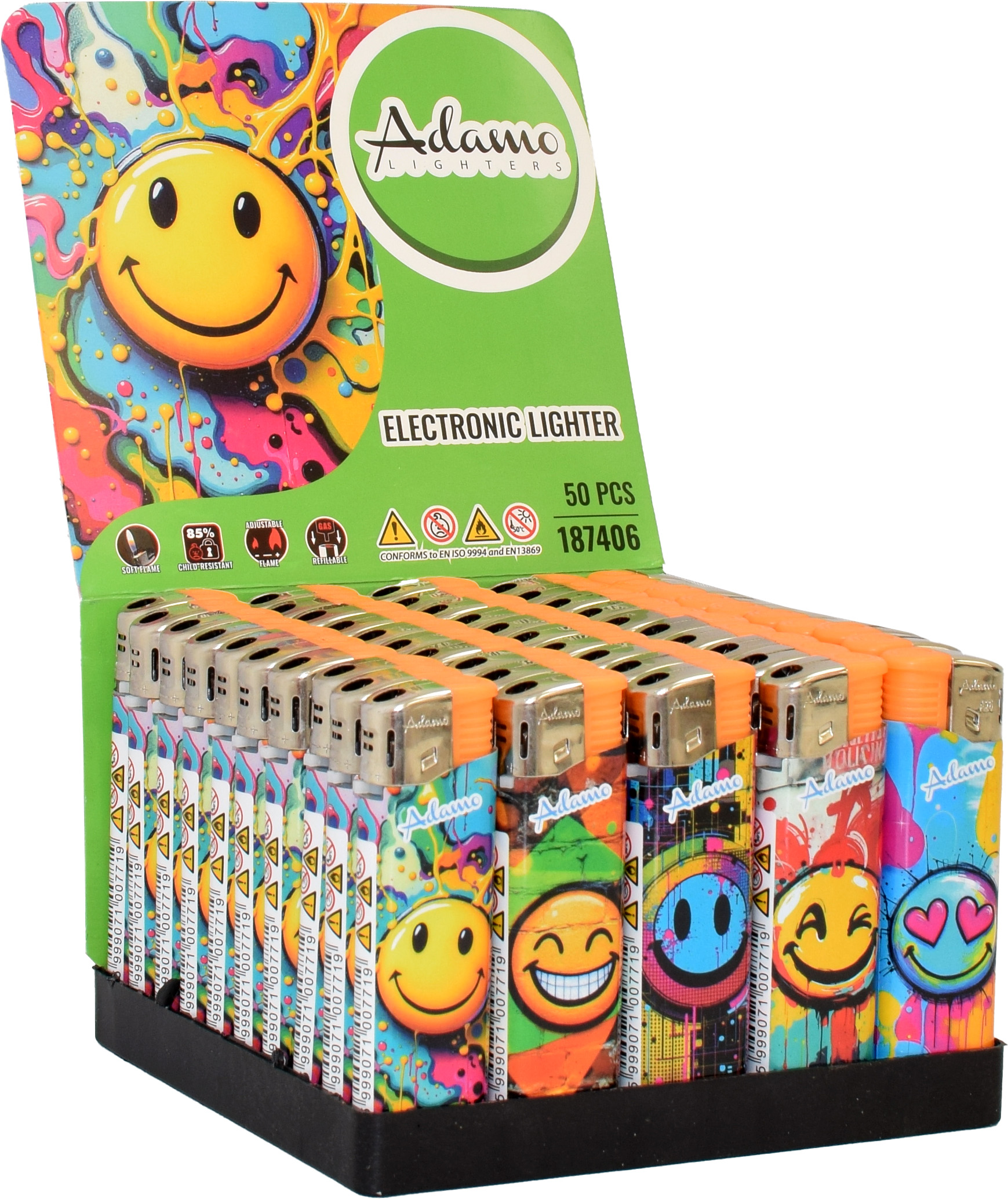 Elektromos Öngyújtó 187406 Adamo Vegyes mintás Slim Smiley