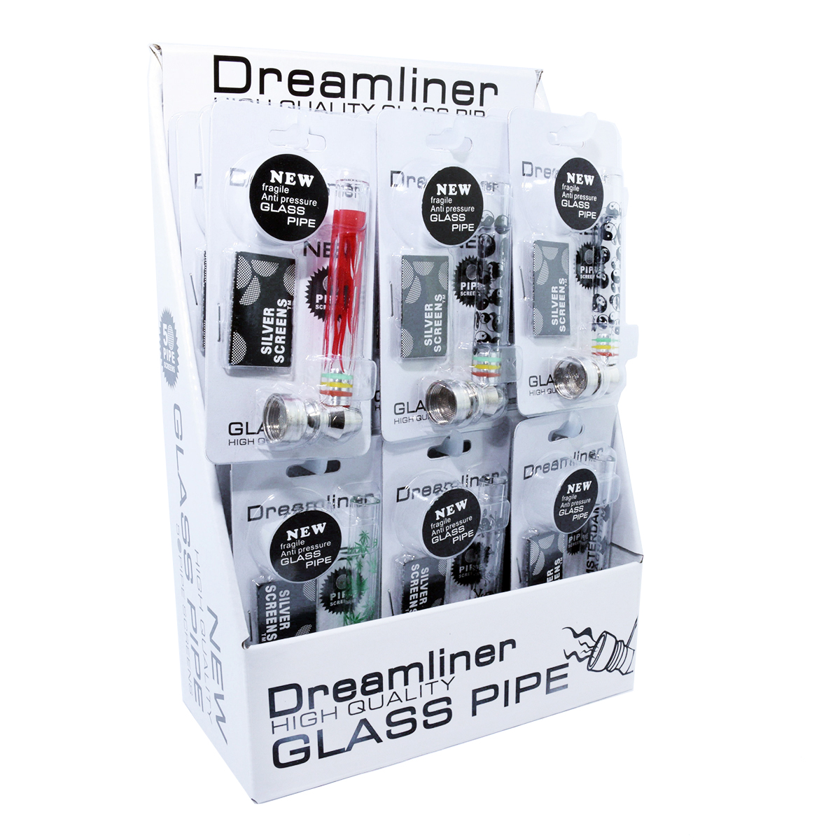 Üveg pipa A340681 átlátszó színes 12 cm