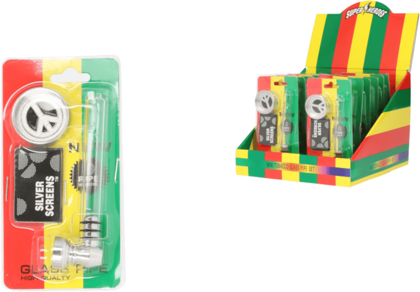 Üveg pipa A340707 Super Heros bliszter + dohányőrlő